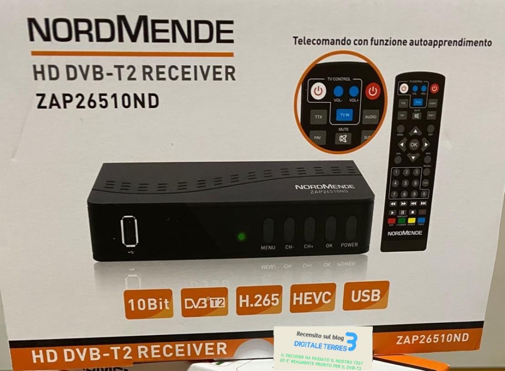 Arriva da NordMENDE un nuovo decoder del futuro ovvero quello per il DVB-T2 è piccolo ed il suo prezzo di listino è di 35 € Circa ma ovviamente essendo in libero mercato nei negozi si può trovare a 25€ circa, i suoi ingressi sono HDMI e anche SCART comodo il fatto che si possa staccare il filo dell’alimentazione, in dotazione non trovate le batterie del telecomando e neanche il cavo HDMI o SCART; il telecomando può diventare universale e semplice da programmare per cui se volete potrete comandare la vostra tv per accenderla e spegnerla ed il volume della Tv , ricerca automatica e manuale dei canali,
