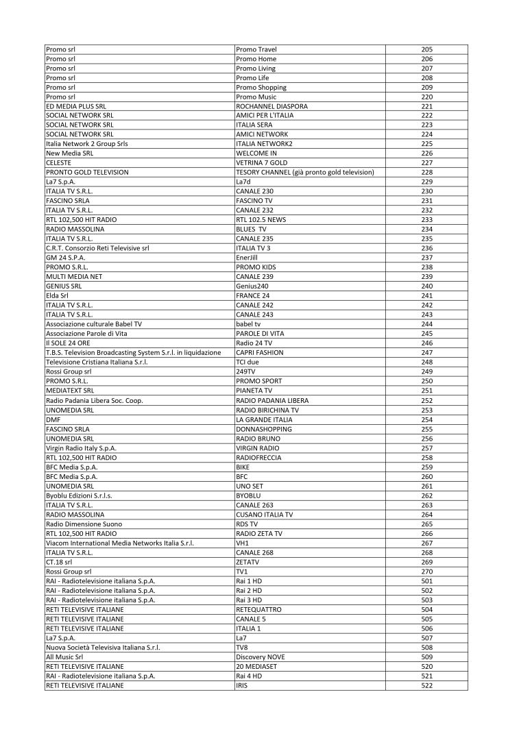 Attribuzioni LCN nazionali