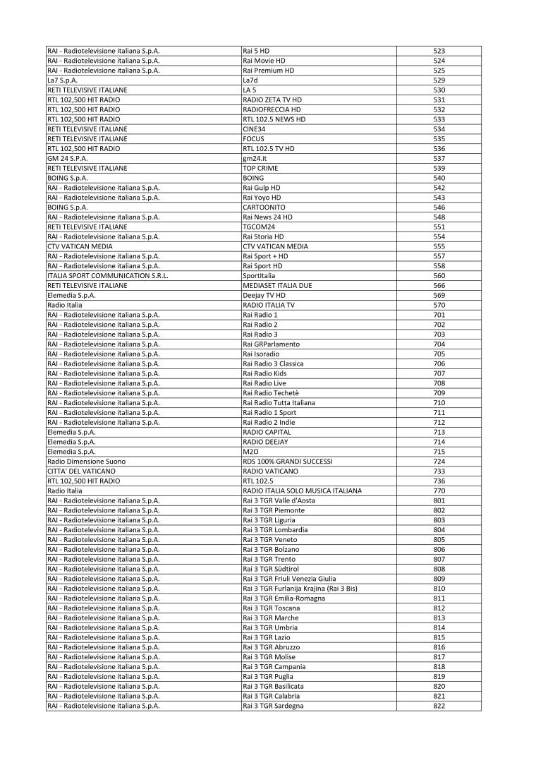 Ecco di seguito l’elenco delle LCN nazionale in esito alla procedura di attribuzione della numerazione automatica dei canali con riferimento ai servizi di media audiovisivi a diffusione nazionale in chiaro (Delibera AGCOM 116/21/CONS).